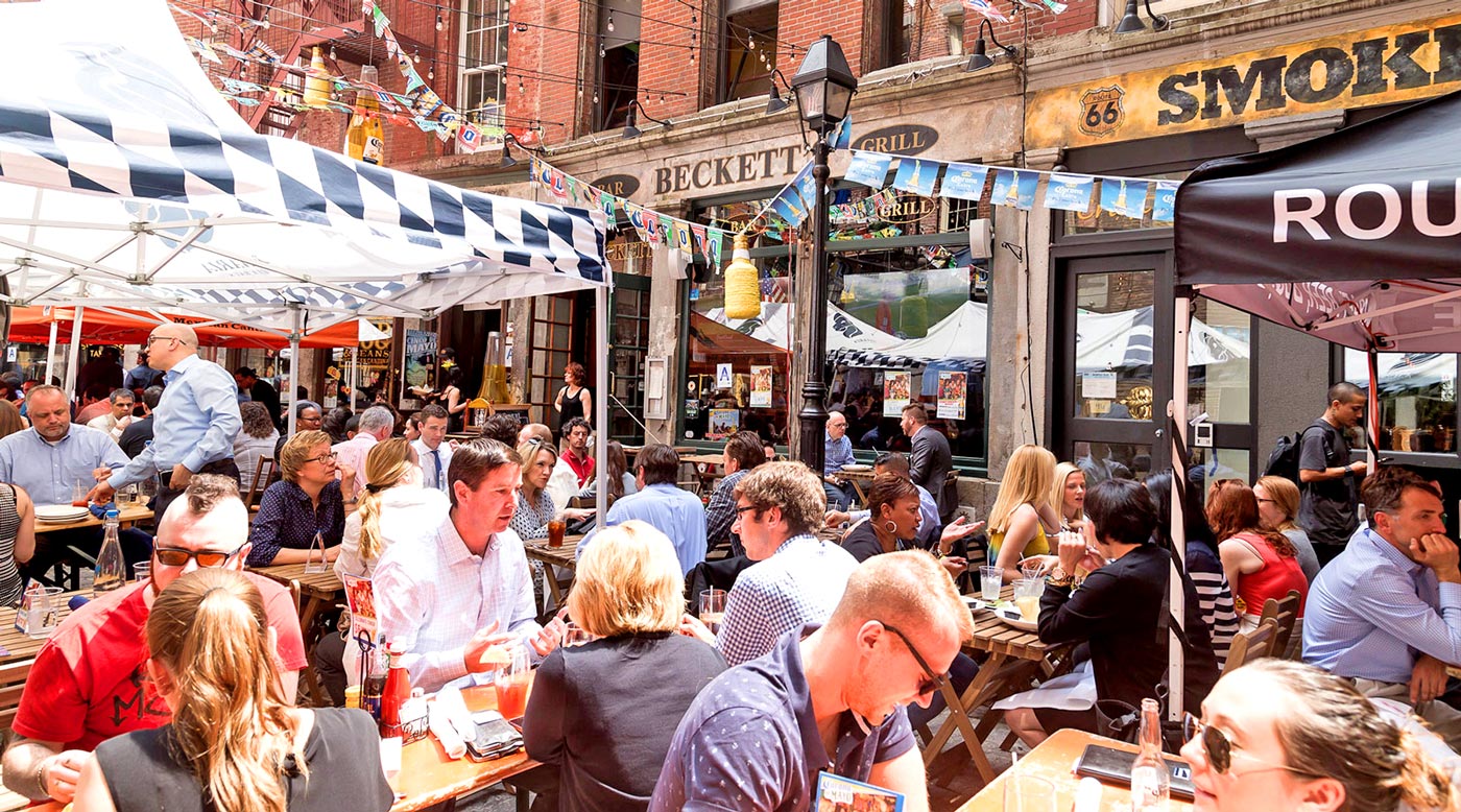 From March to the end of November we have outdoor dining. This unique and relaxed atmosphere resembles that of a European city sidewalk, yet is a mere stone throw from Wall Street.